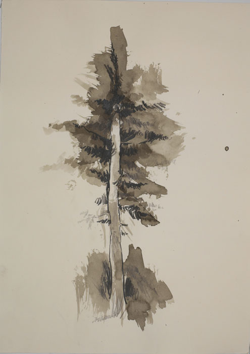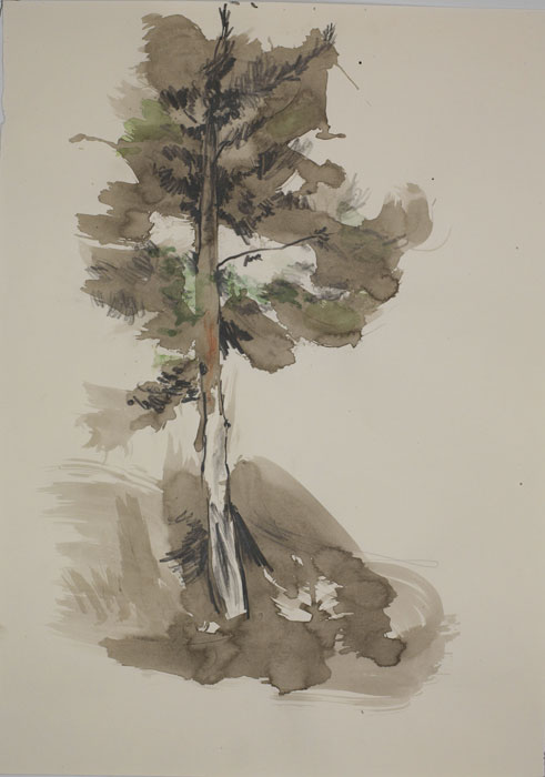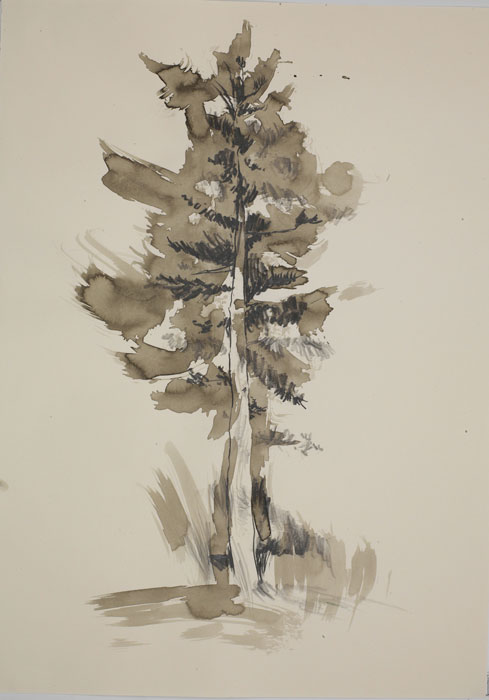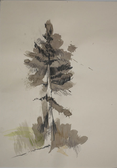 ![]() „Baum (12)“, 2013, ca. 50 cm x 70 cm, Tusche/ Aquarell/ Bleistift, 12 von 68 |