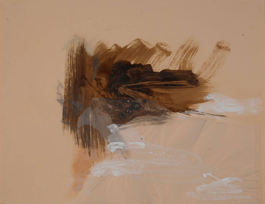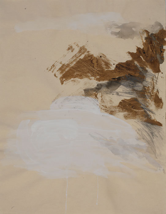"Berge und See (2)", 2004, ca. 40 cm x 70 cm, Holzbeize/ Bleistift/ Tusche/ Acrylfarbe, 2 von 10